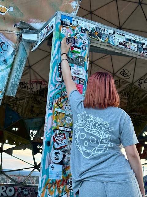 Here are some meanings I see in the logo: It shows buildings connecting two lovely cities, Zürich and Winterthur, to represent society; flowers and the globe, symbolizing the love we share for nature and people. These two elements together represent human habitation on our Earth. The skull shows how this is not unlimited, meaning we should take care of the world and each other. What do you think?